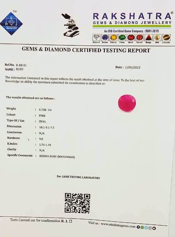 | SPECIFIC COMMENTS: | BURMA RUBY { MAYANMAR } |
