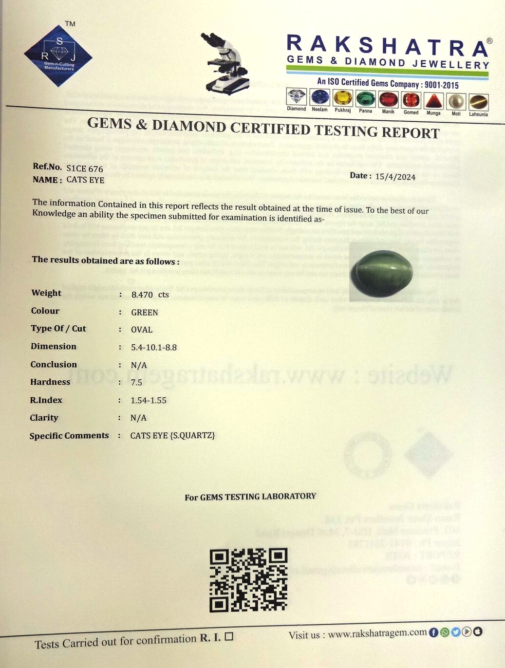 | SPECIFIC COMMENTS: | CATS EYE { S. QUARTZ } |