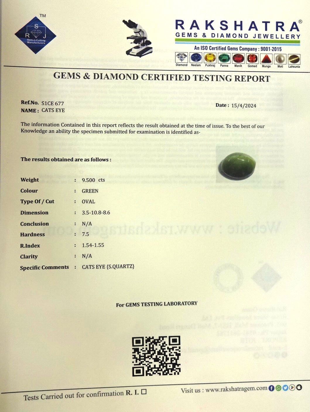| SPECIFIC COMMENTS: | CATS EYE { S. QUARTZ } |