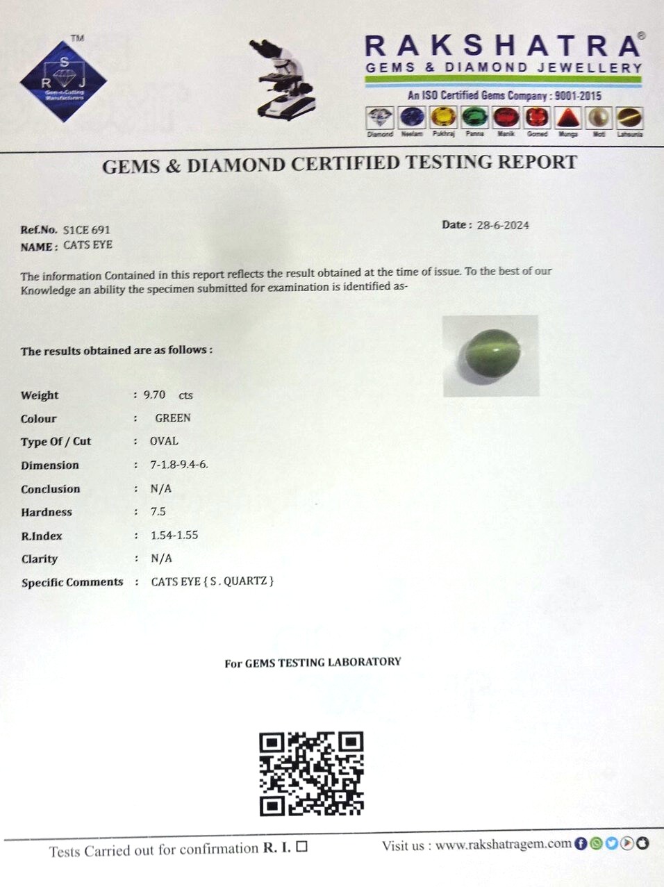 | SPECIFIC COMMENTS: | CATS EYE {S.QUARTZ} |