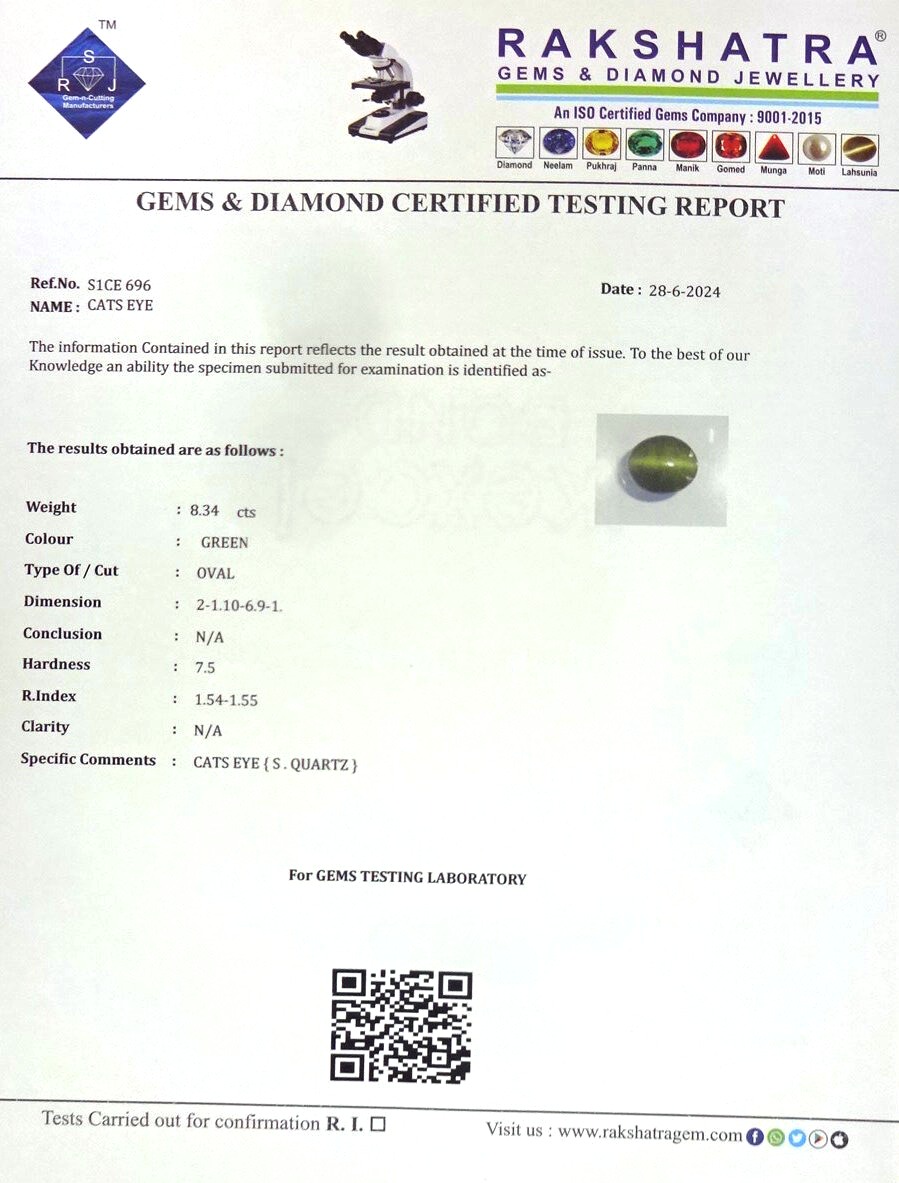 | SPECIFIC COMMENTS: | CATS EYE {S.QUARTZ} |