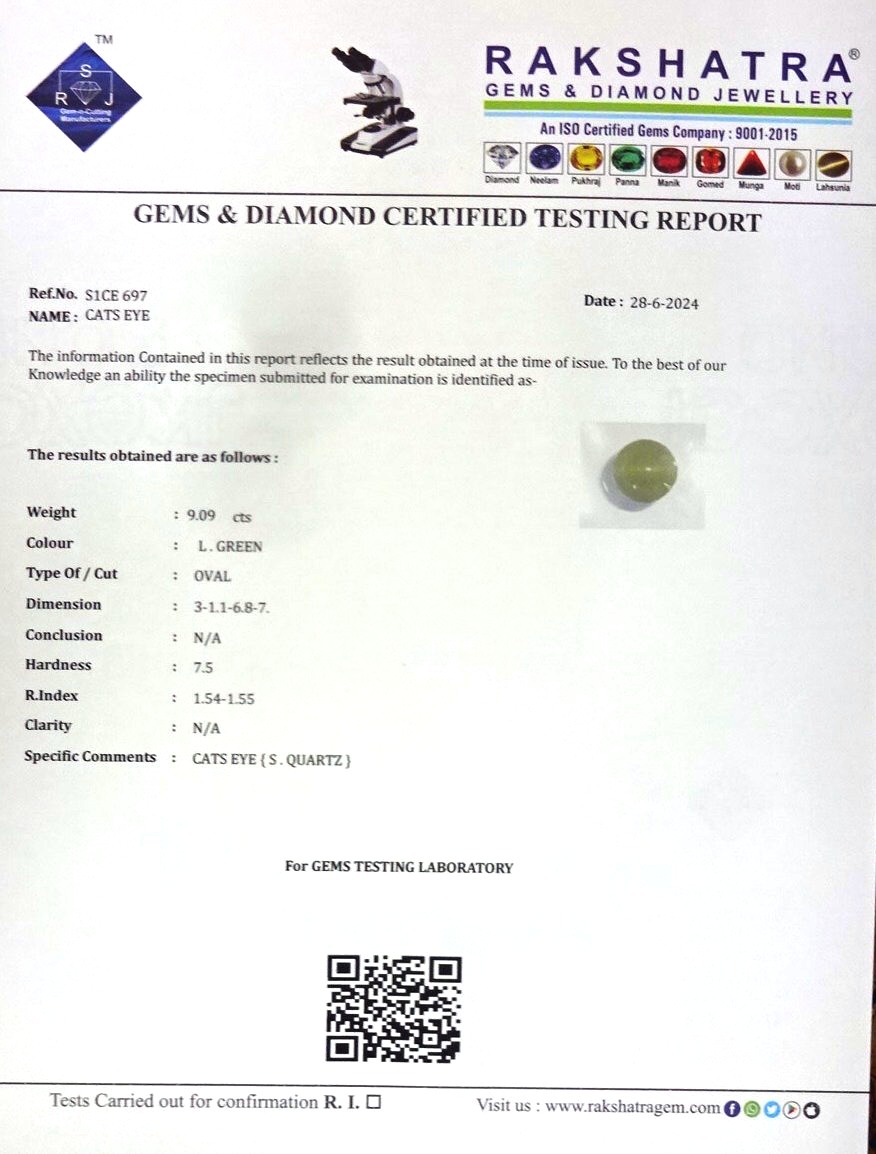 | SPECIFIC COMMENTS: | CATS EYE {S.QUARTZ} |