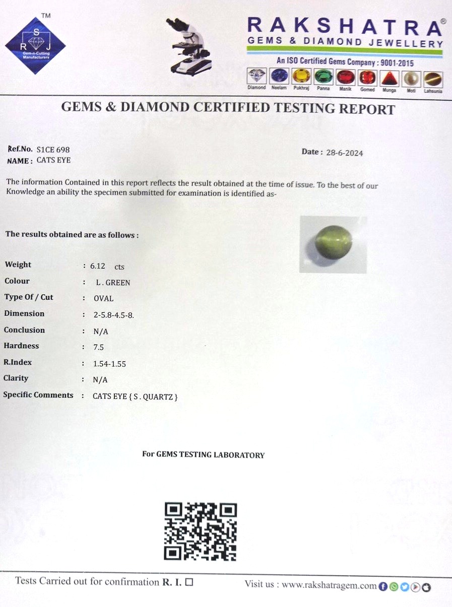 | SPECIFIC COMMENTS: | CATS EYE {S.QUARTZ} |