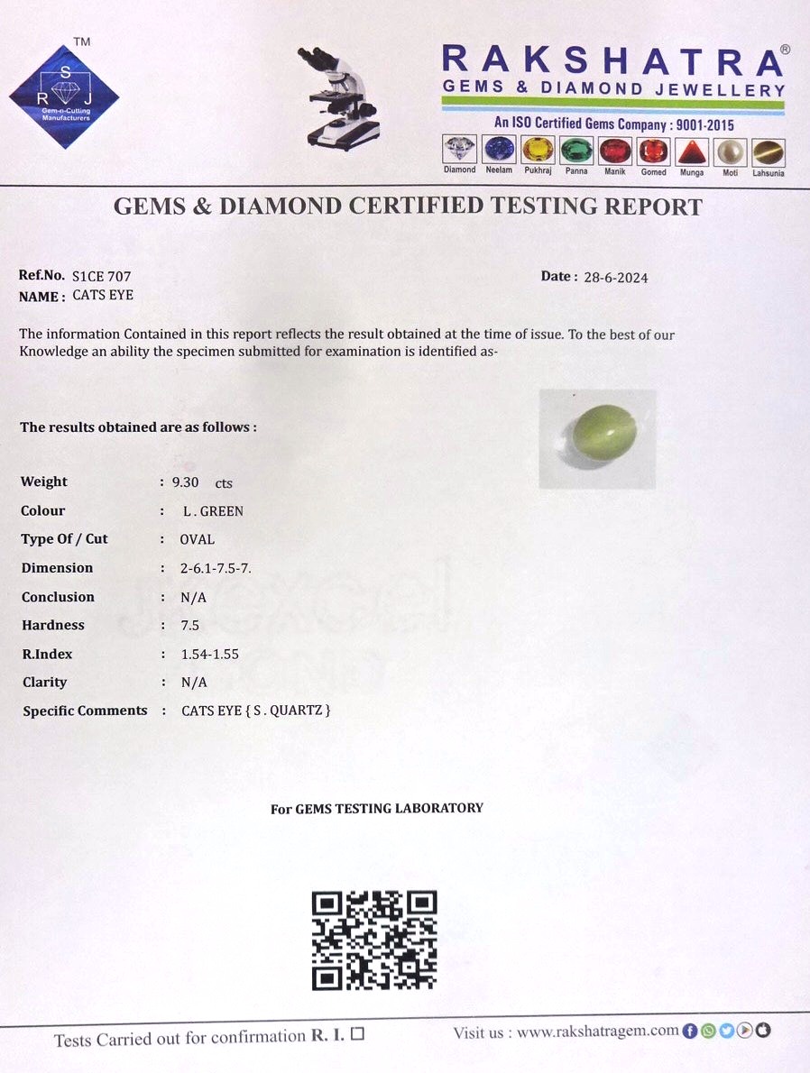 | SPECIFIC COMMENTS: | CATS EYE {S.QUARTZ} |