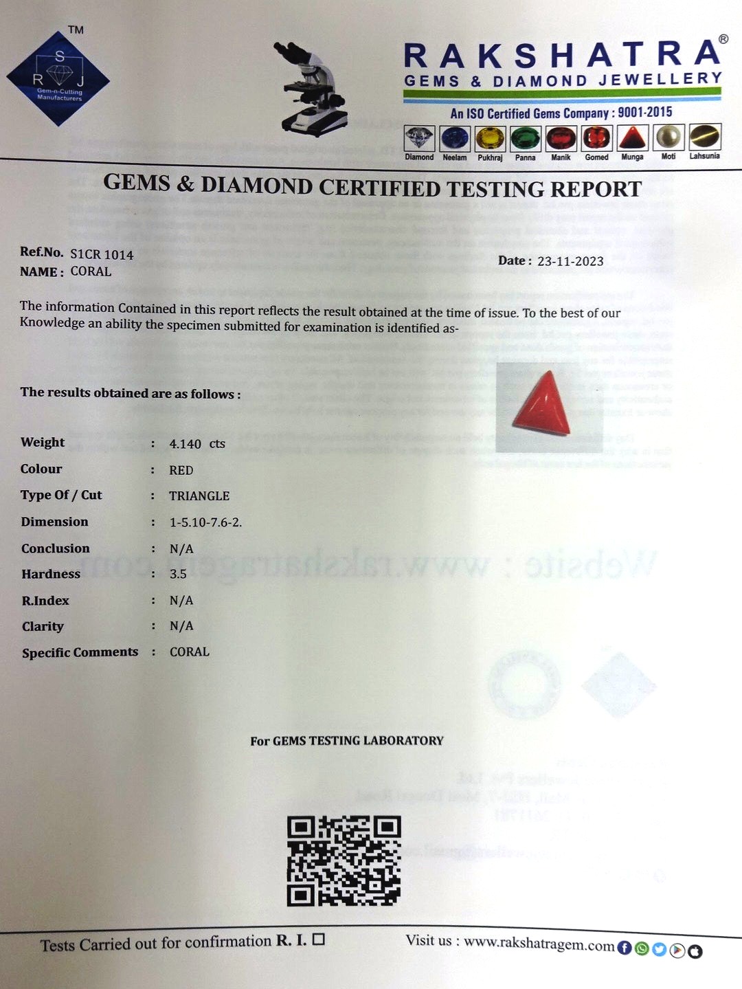 | WEIGHT: | 4.14 CTS |