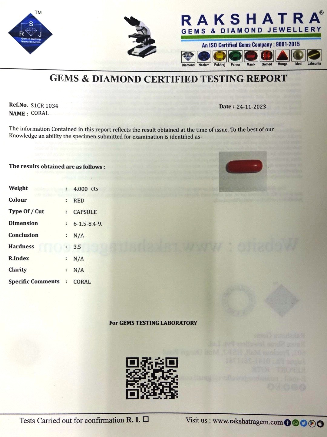 | WEIGHT: | 4.00 CTS |
