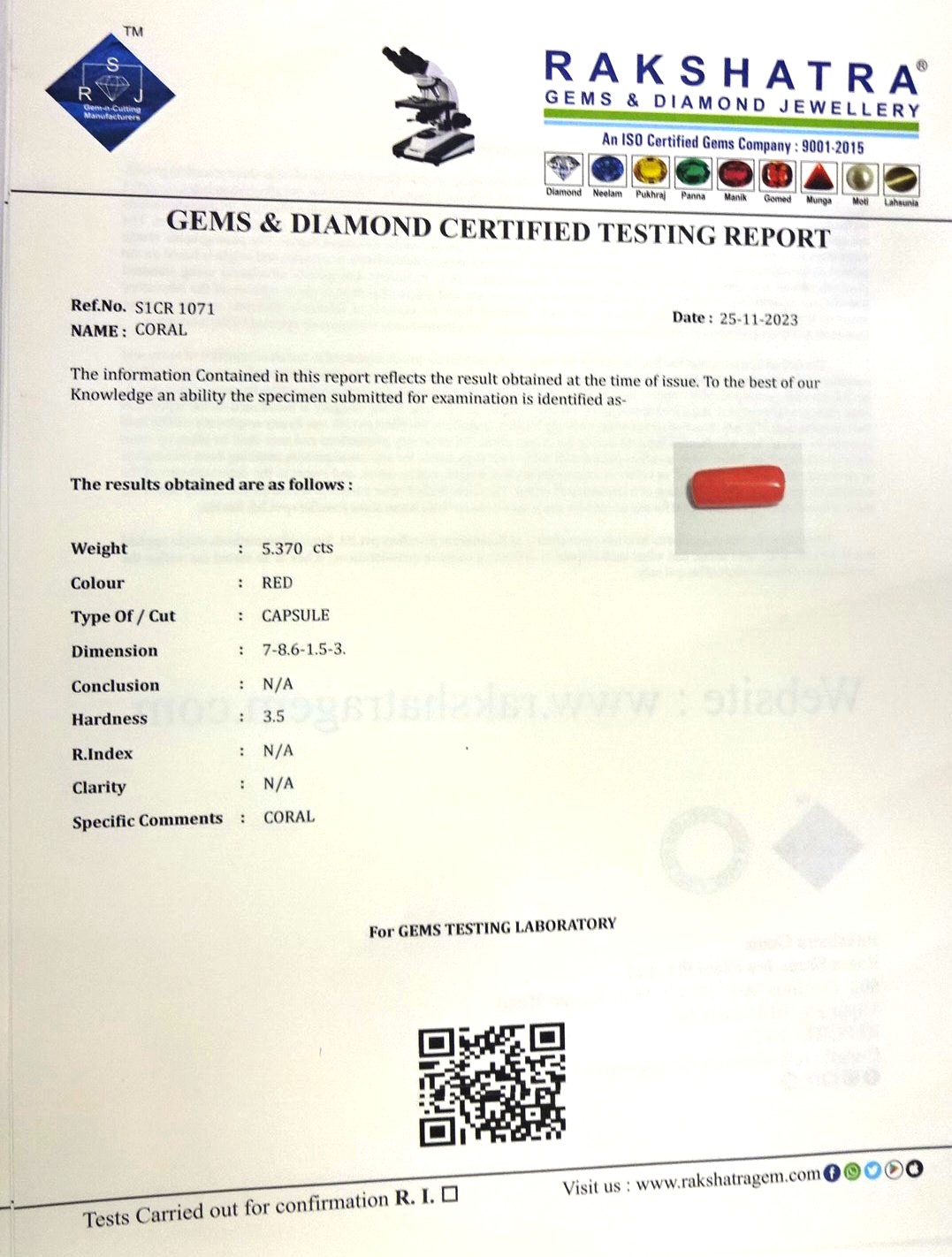 | WEIGHT: | 5.37 CTS |
