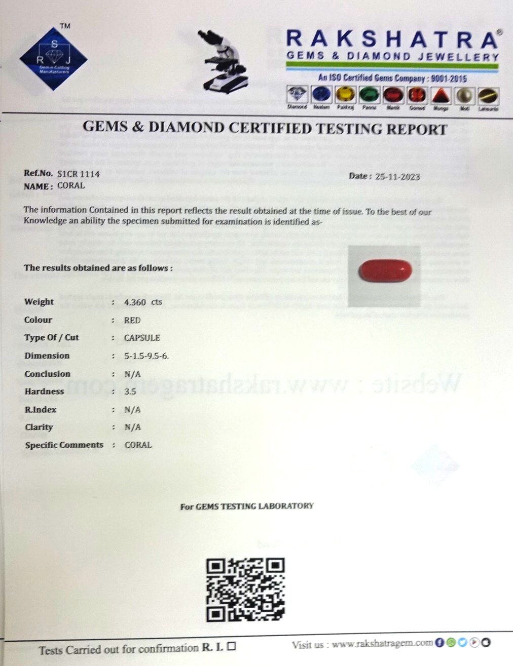 | WEIGHT: | 4.36 CTS |