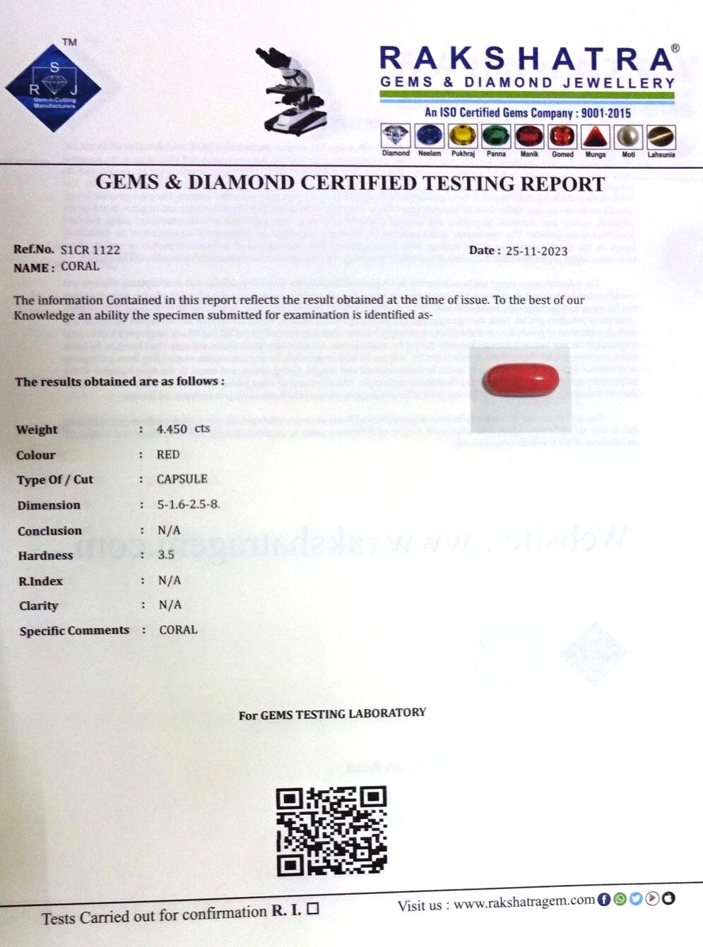 | WEIGHT: | 4.45 CTS |