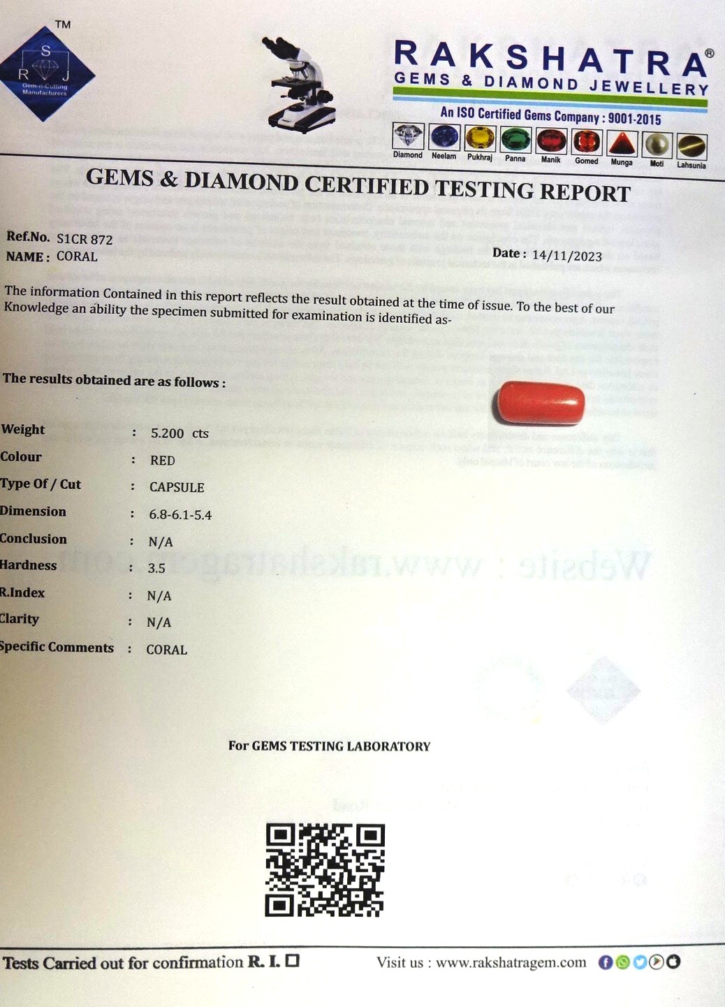 | WEIGHT: | 5.20 CTS |