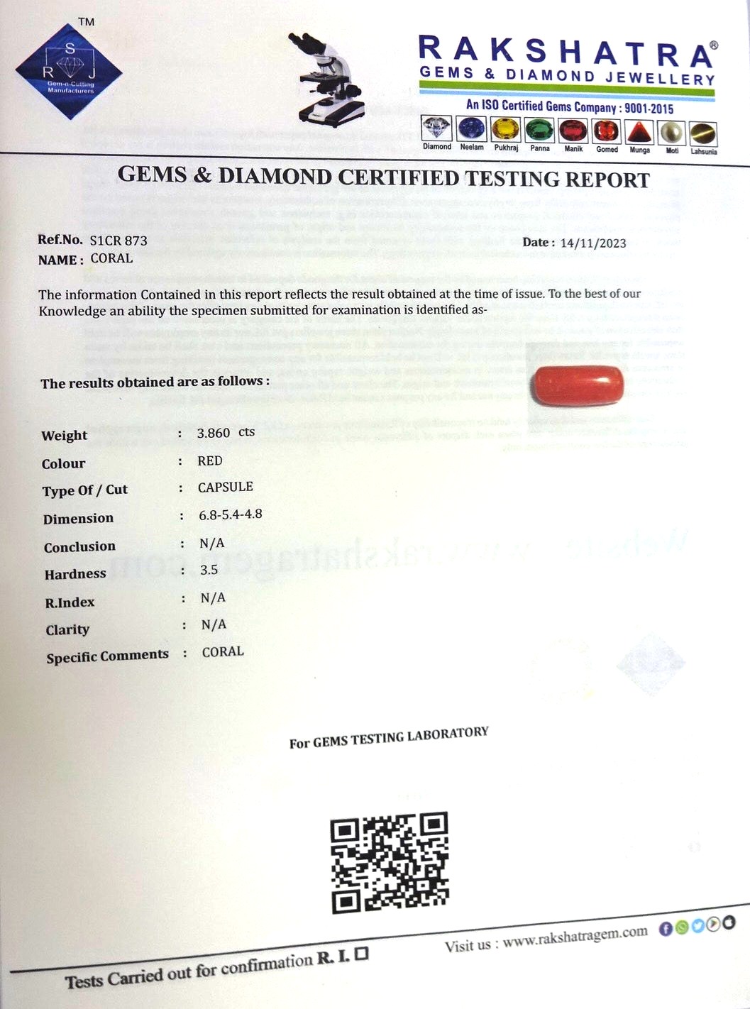 | WEIGHT: | 3.86 CTS |