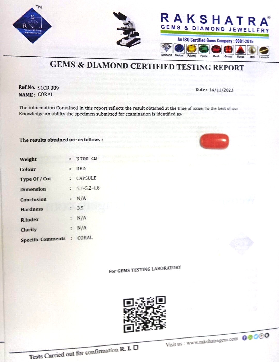 | WEIGHT: | 3.70 CTS |