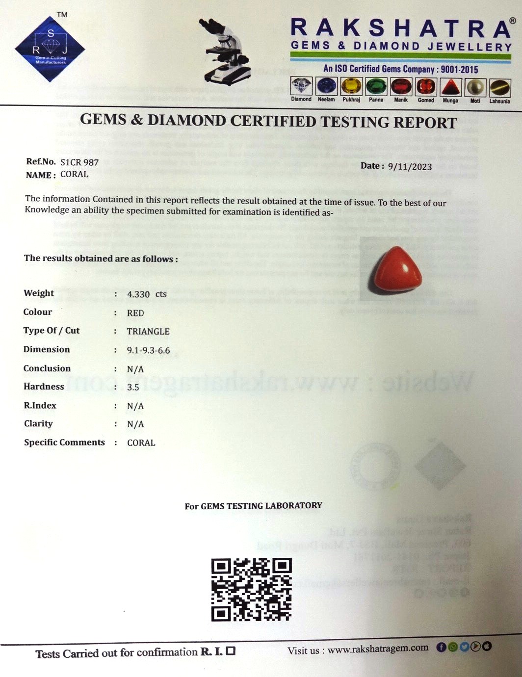 | WEIGHT: | 4.33 CTS  |