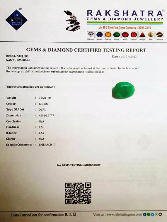 | WEIGHT: | 7.27 CTS |