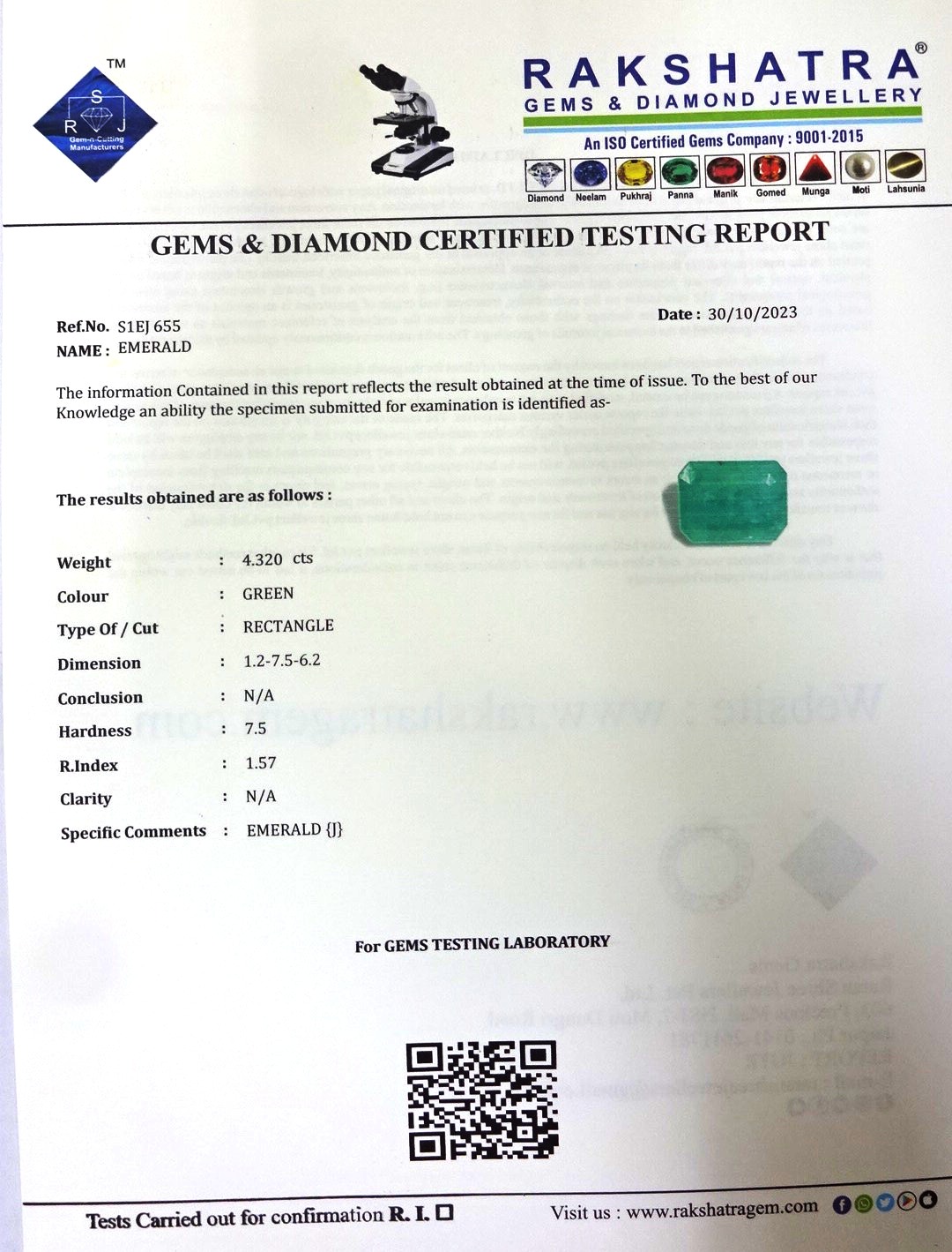 | WEIGHT: | 4.32 CTS |