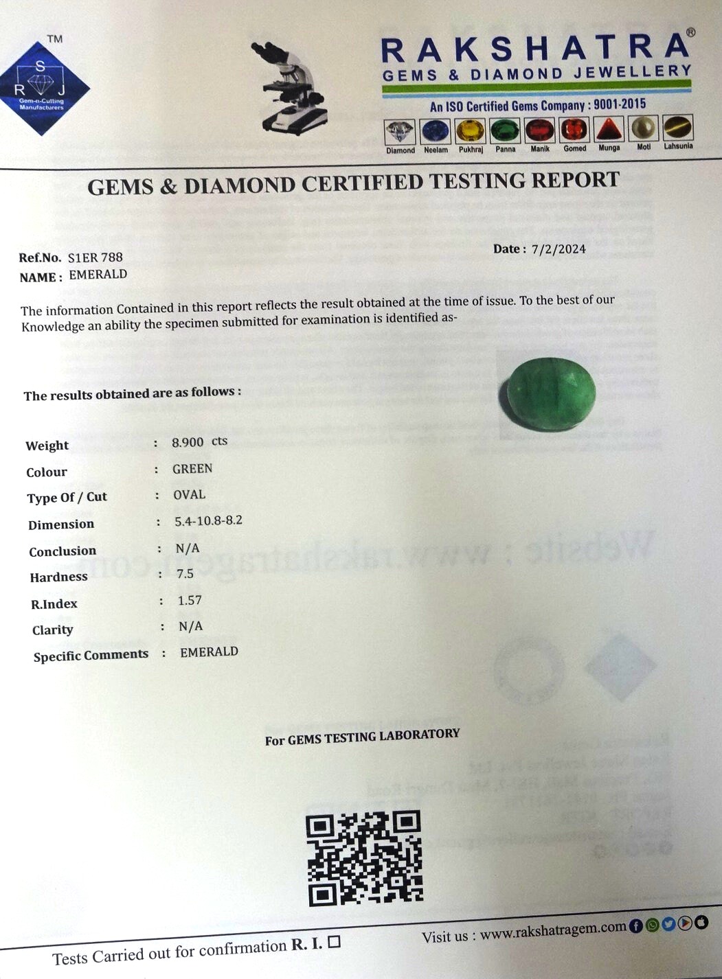 | WEIGHT: | 8.90 CTS |