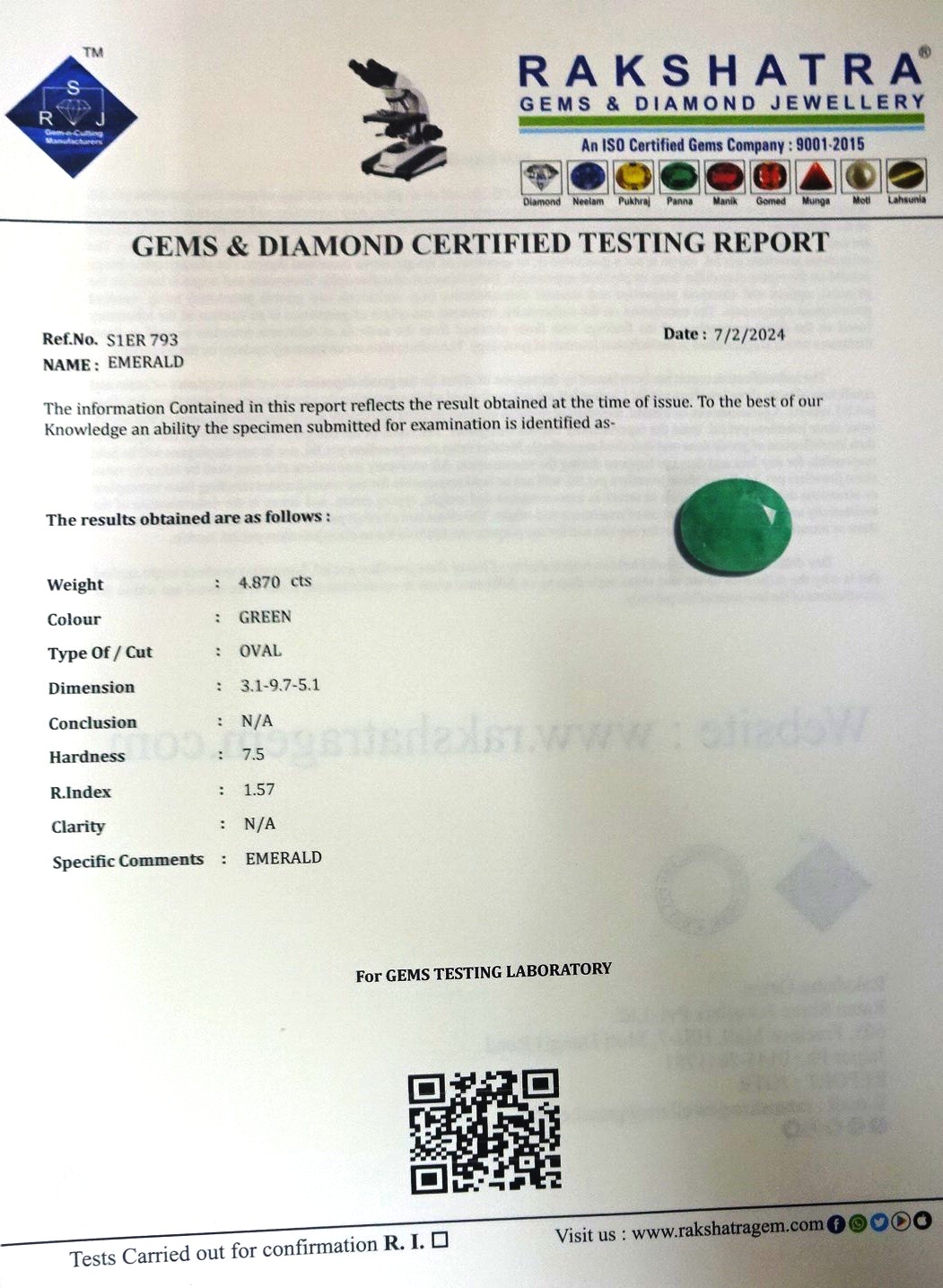 | WEIGHT: | 4.87 CTS |