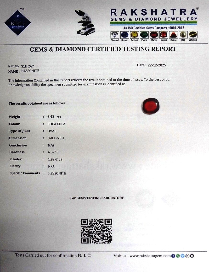 | SPECIFIC COMMENTS: | HESSONITE |