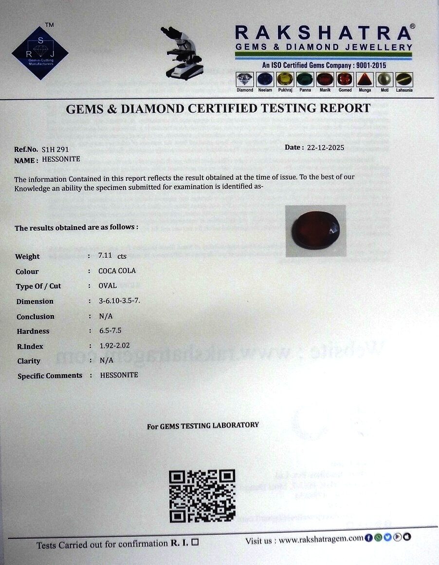 | SPECIFIC COMMENTS: | HESSONITE |