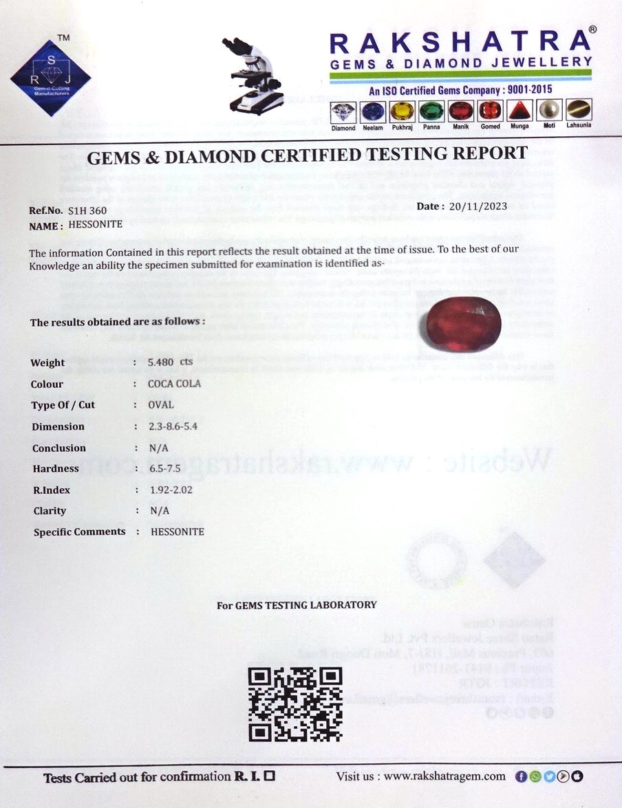 | SPECIFIC COMMENTS: | HESSONITE |