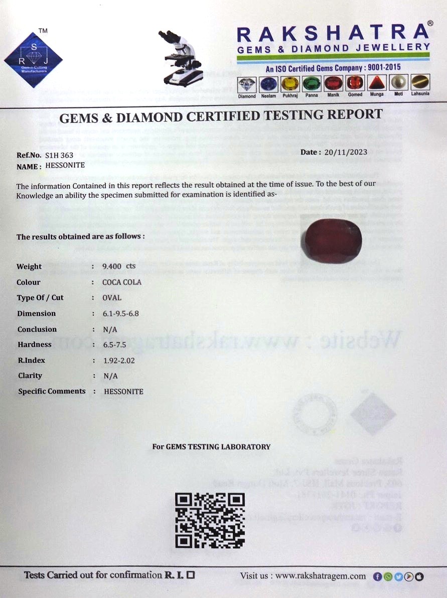 | SPECIFIC COMMENTS: | HESSONITE |