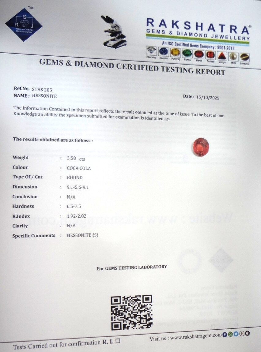 | SPECIFIC COMMENTS: | HESSONITE { S } |