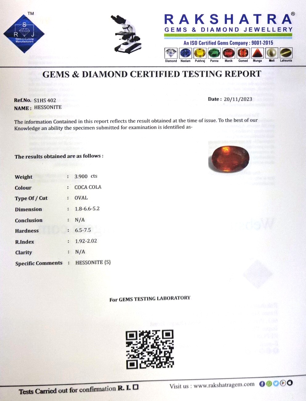 | SPECIFIC COMMENTS: | HESSONITE {S} |