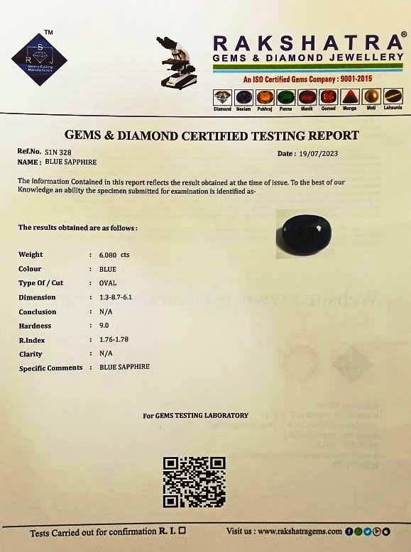 | SPECIFIC COMMENTS: | BLUE SAPPHIRE |