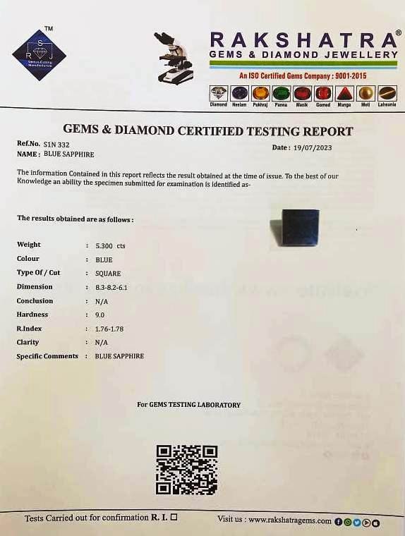 | SPECIFIC COMMENTS: | BLUE SAPPHIRE |