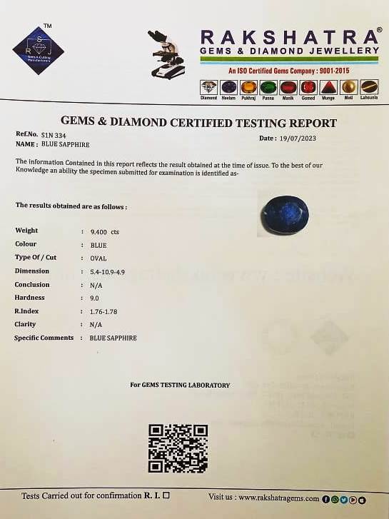 | SPECIFIC COMMENTS: | BLUE SAPPHIRE |