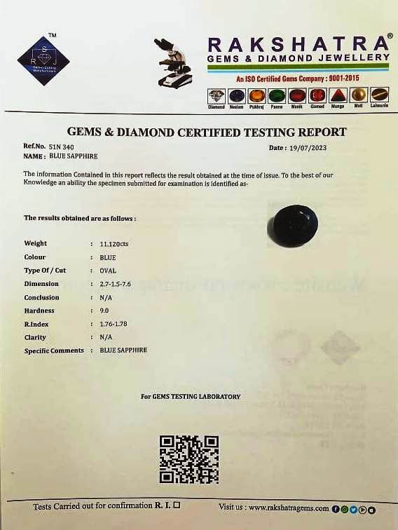 | SPECIFIC COMMENTS: | BLUE SAPPHIRE |
