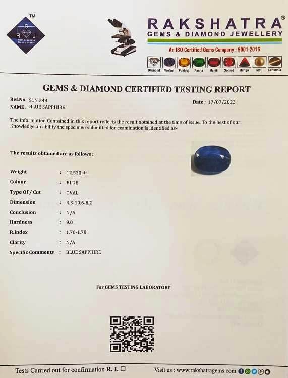 | SPECIFIC COMMENTS: | BLUE SAPPHIRE |