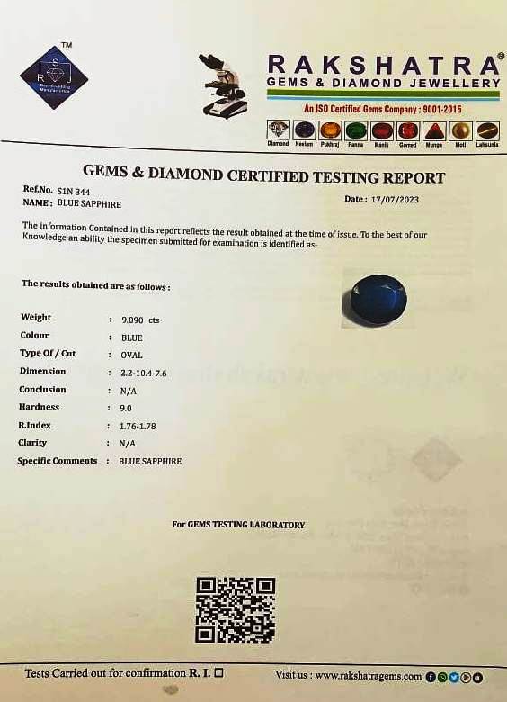 | SPECIFIC COMMENTS: | BLUE SAPPHIRE |