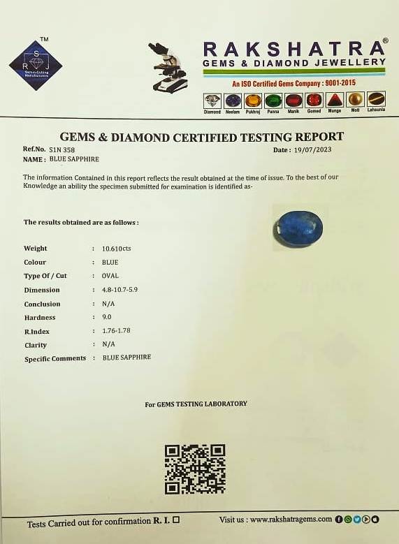 | SPECIFIC COMMENTS: | BLUE SAPPHIRE |