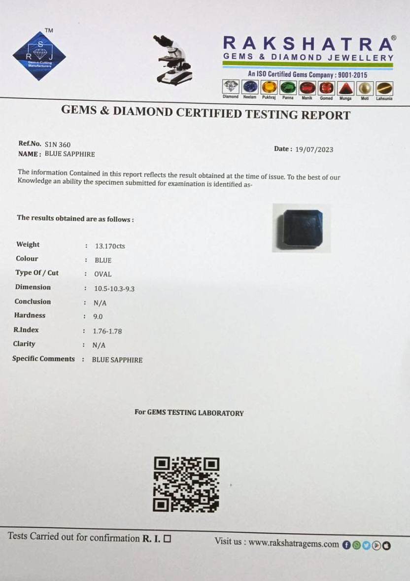 | SPECIFIC COMMENTS: | BLUE SAPPHIRE |