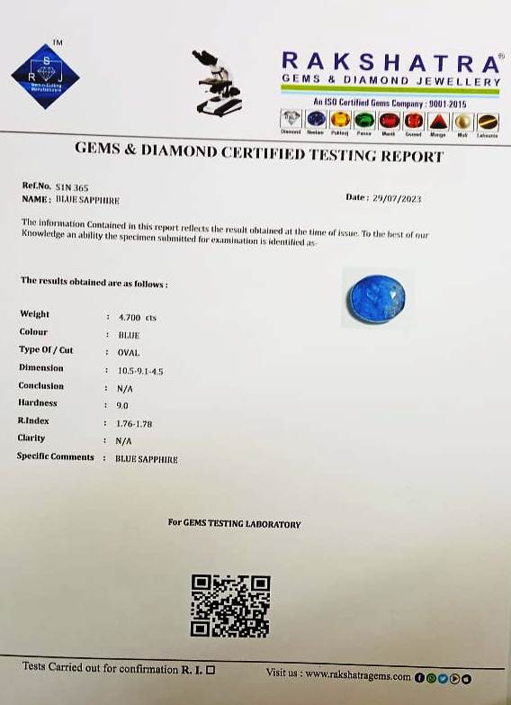 | SPECIFIC COMMENTS: | BLUE SAPPHIRE |