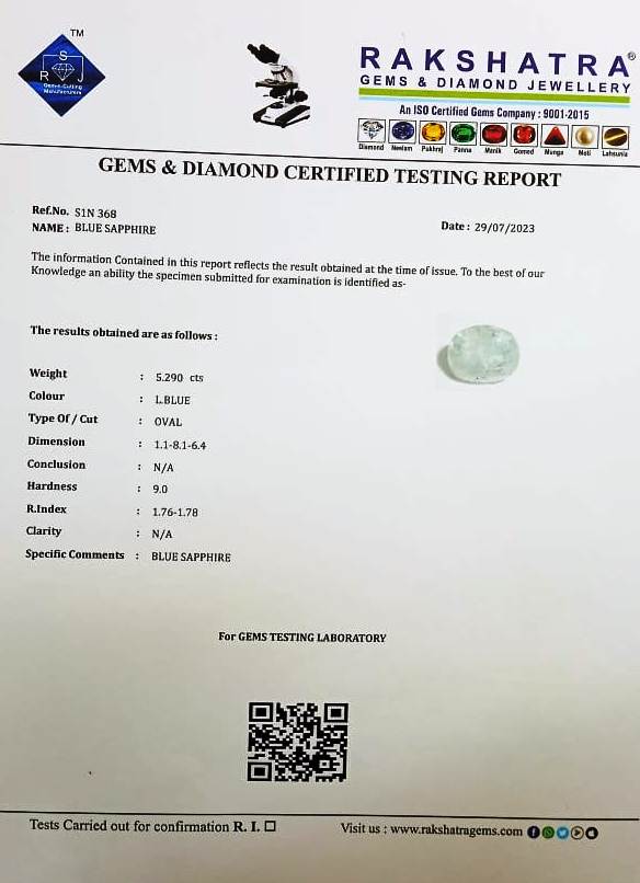 | SPECIFIC COMMENTS: | BLUE SAPPHIRE |
