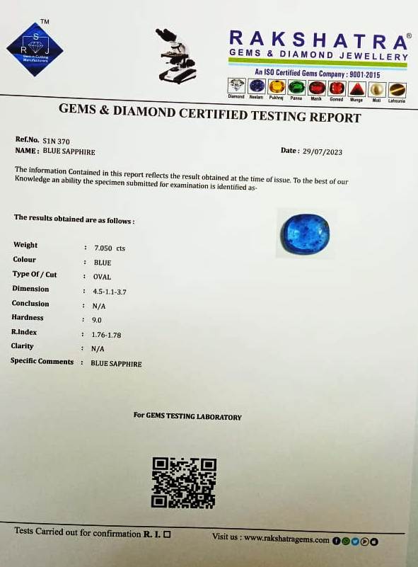 | SPECIFIC COMMENTS: | BLUE SAPPHIRE |