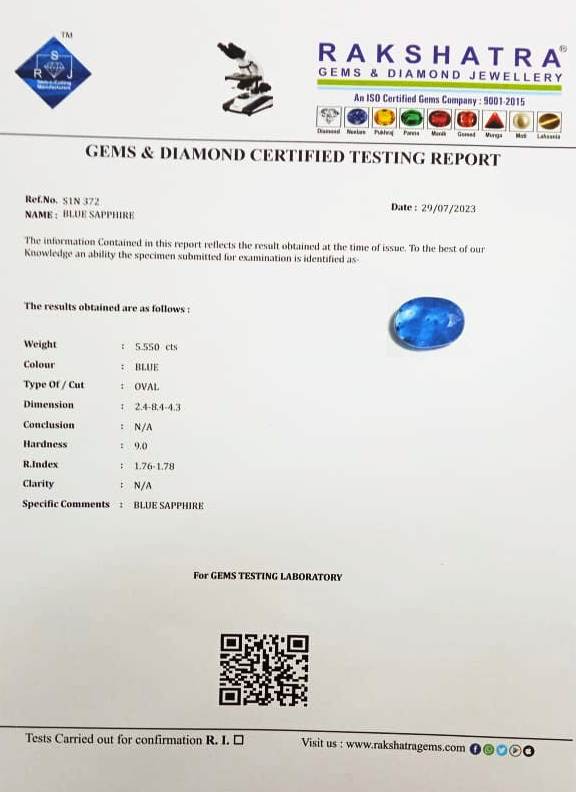 | SPECIFIC COMMENTS: | BLUE SAPPHIRE |