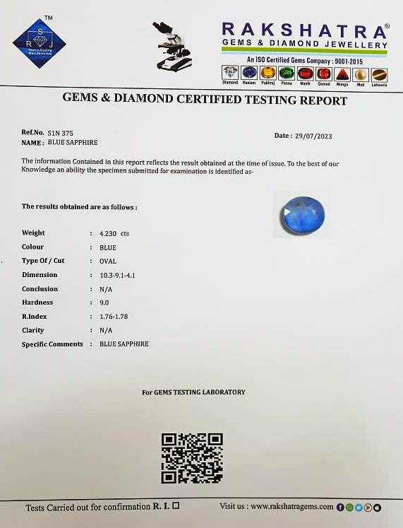 | SPECIFIC COMMENTS: | BLUE SAPPHIRE |