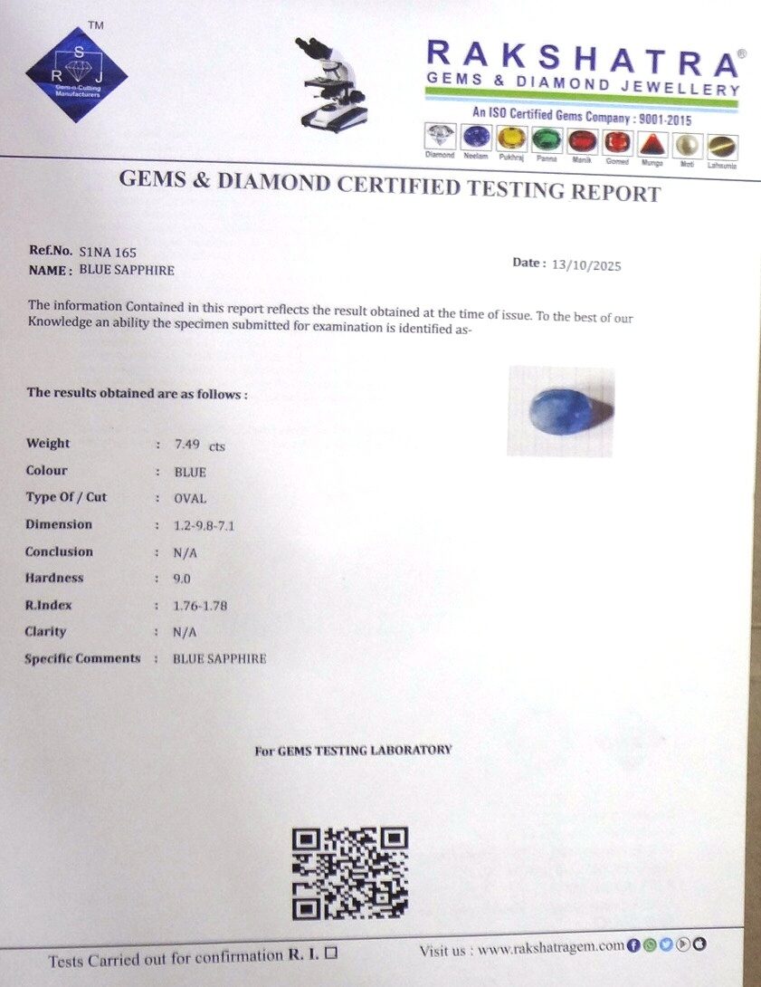 | SPECIFIC COMMENTS: | BLUE SAPPHIRE { A } |
