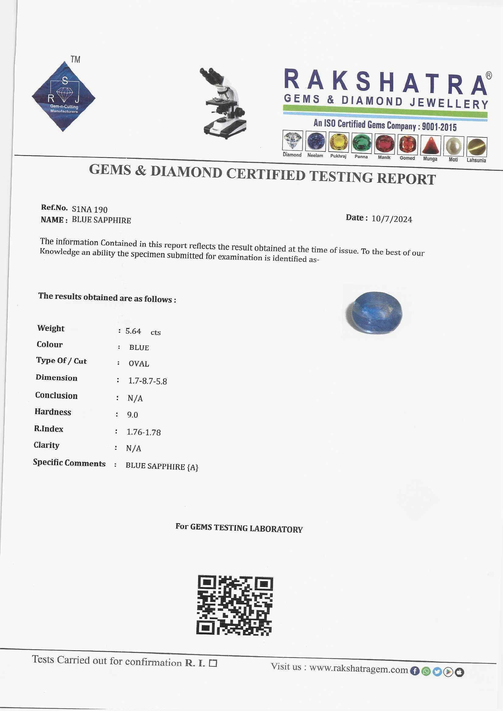 | SPECIFIC COMMENTS: | BLUE SAPPHIRE {A} |