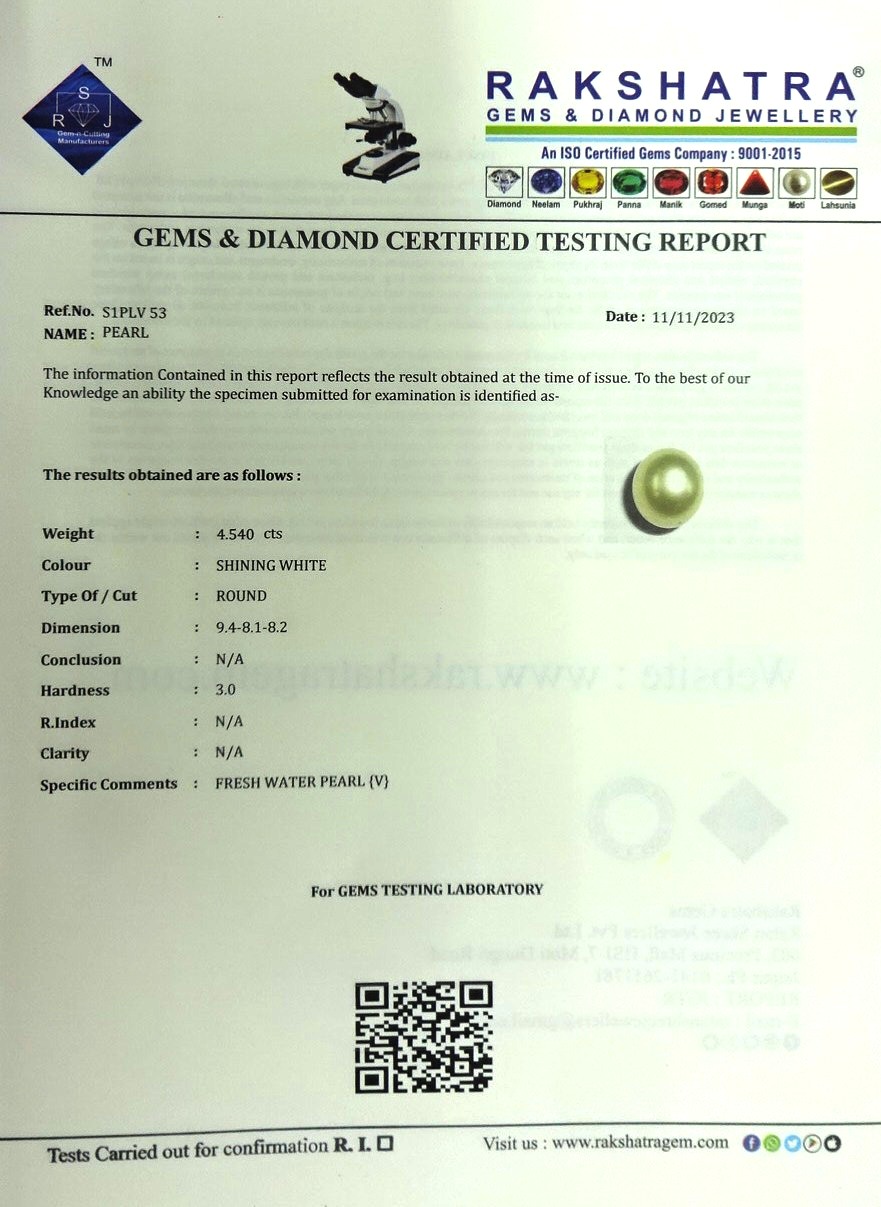 | SPECIFIC COMMENTS: | FRESH WATER PEARL {V} |
