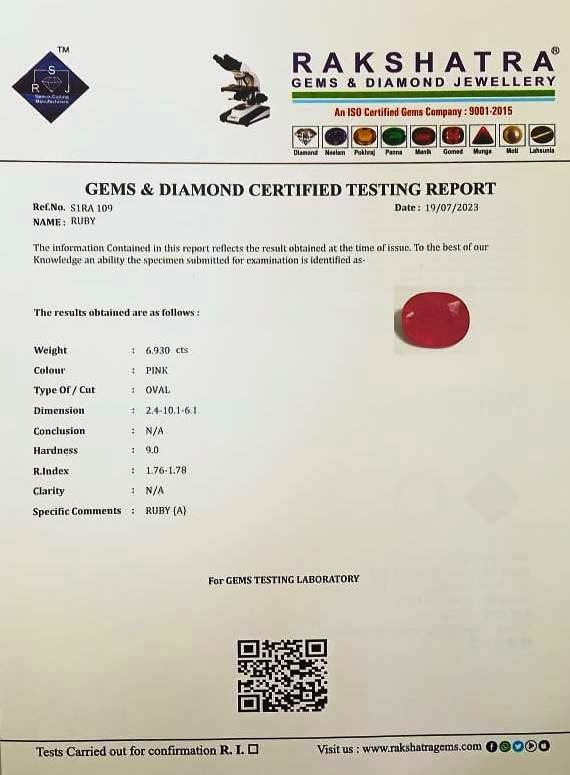| SPECIFIC COMMENTS: | RUBY { A } |