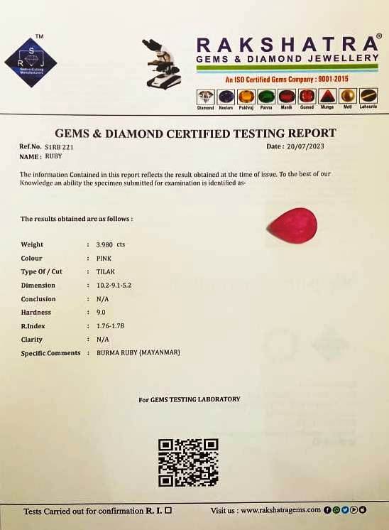 | SPECIFIC COMMENTS: | BURMA RUBY {MAYANMAR} |