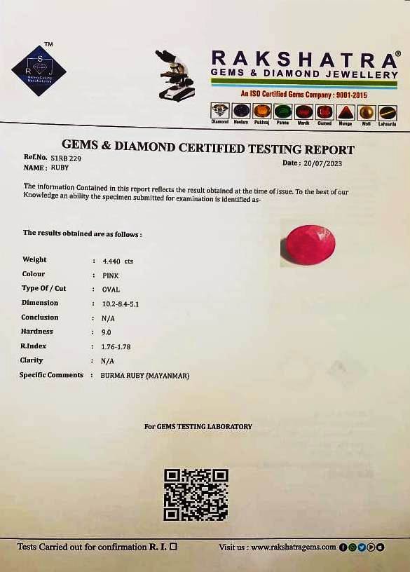 | SPECIFIC COMMENTS: | BURMA RUBY {MAYANMAR} |