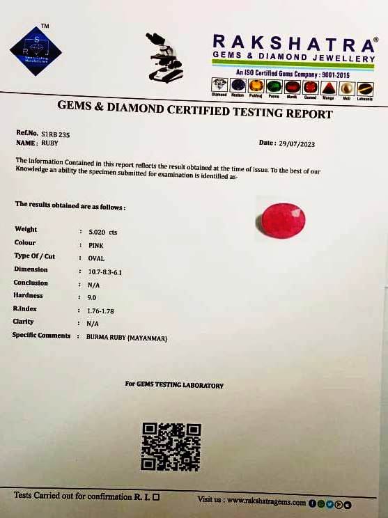 | SPECIFIC COMMENTS: | BURMA RUBY {MAYANMAR} |