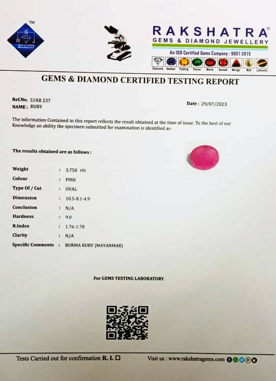 | SPECIFIC COMMENTS: | BURMA RUBY {MAYANMAR} |