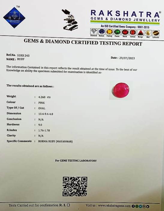 | SPECIFIC COMMENTS: | BURMA RUBY {MAYANMAR} |