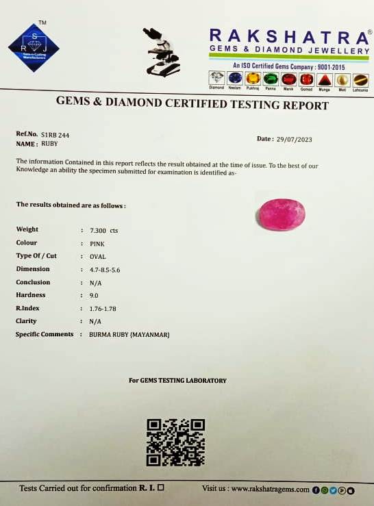 | SPECIFIC COMMENTS: | BURMA RUBY {MAYANMAR} |
